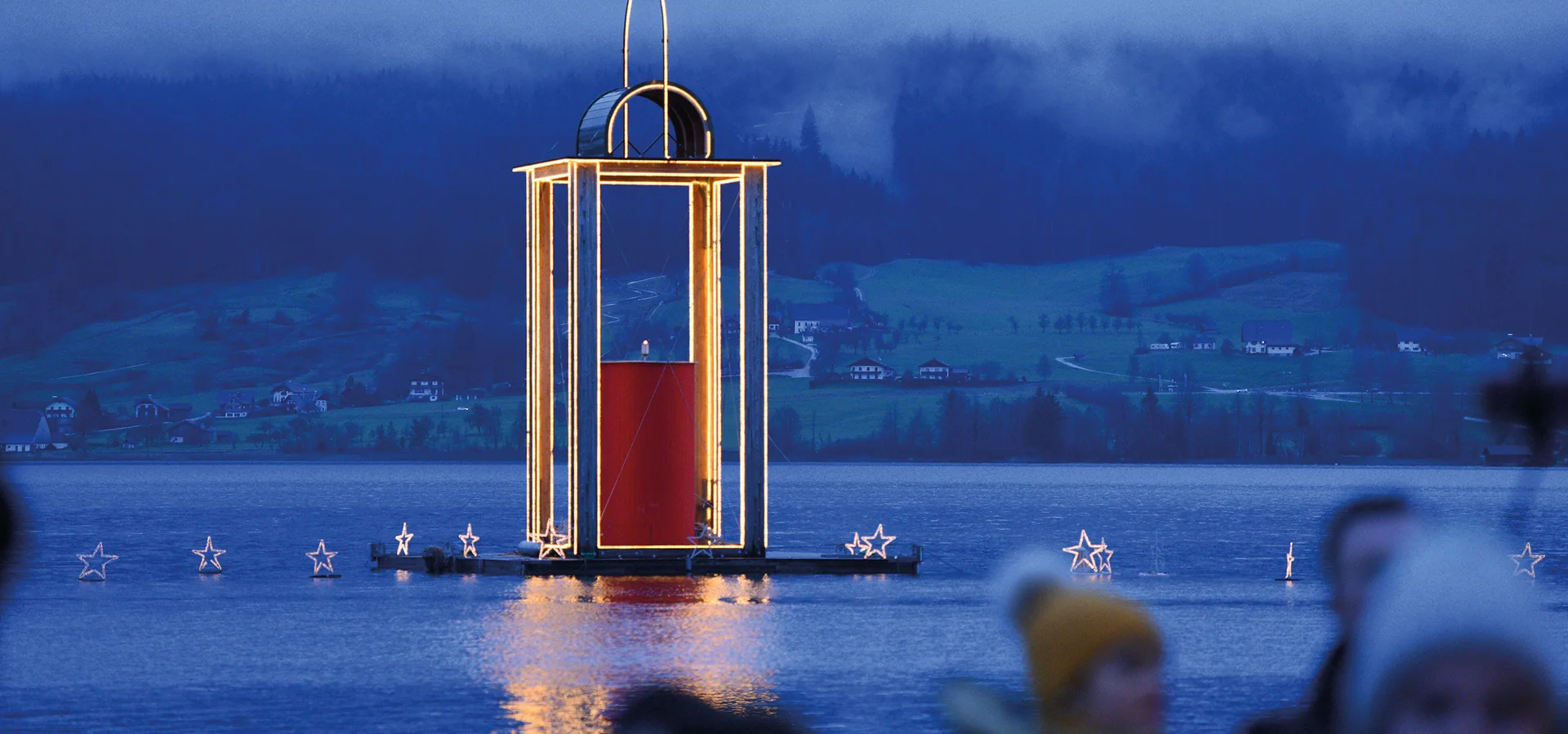 Bestaunen Sie die riesige schwimmende Friedenslichtlaterne vor St. Wolfgang und lassen Sie sich von der 11 Meter hohen Kerze direkt am Seeufer von St. Gilgen verzaubern.