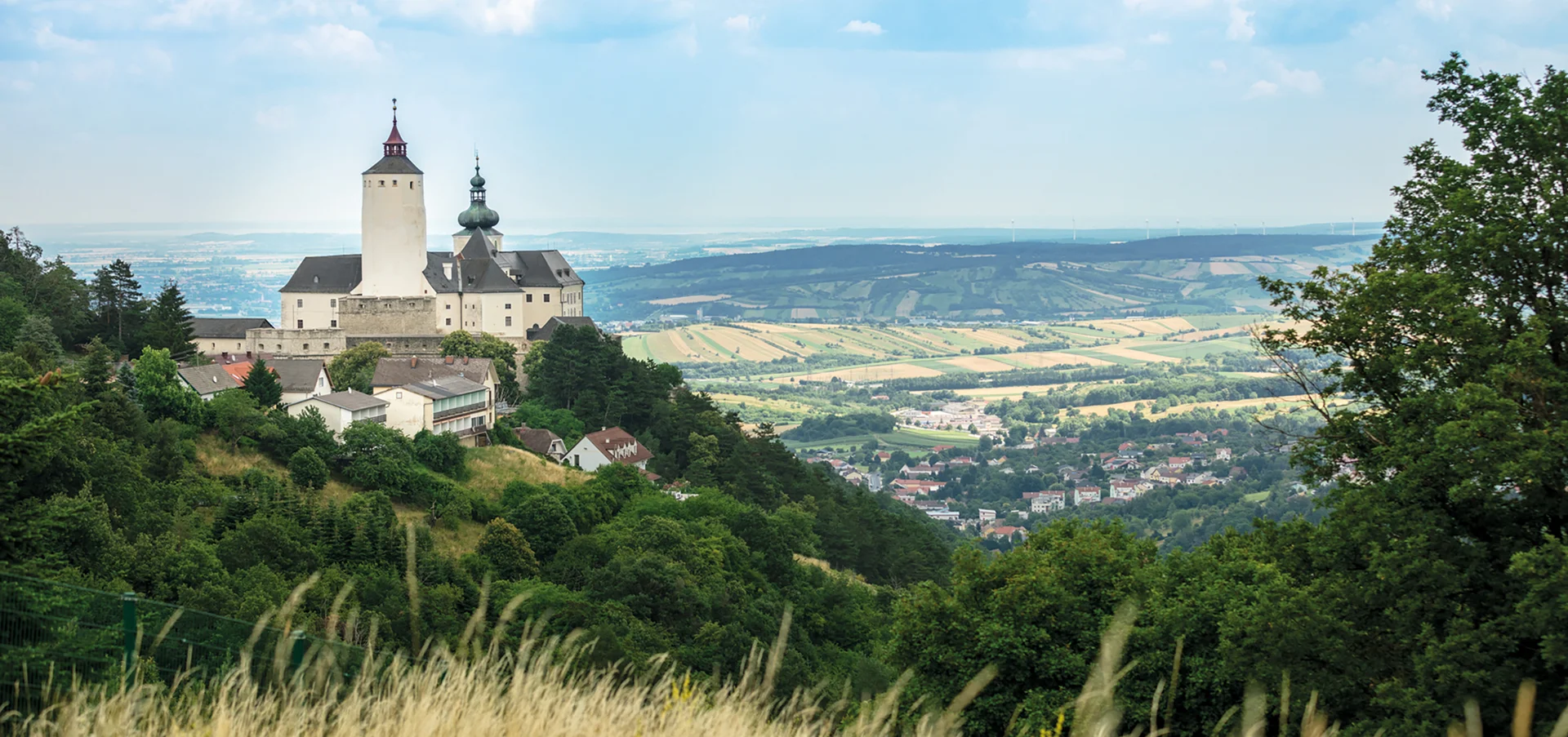 Die Burg Forchtenstein liegt im Burgenland, im Osten Österreichs, etwa 10 Kilometer nordwestlich von der Stadt Eisenstadt. Geografisch ist die Burg auf einem Hügel positioniert, der eine hervorragende Sicht auf die umliegenden Weinlandschaften und die sanften Hügel der Region bietet. Die Anreise zur Burg erfolgt in der Regel über die B50, die eine gute Anbindung an die umliegenden Städte und Sehenswürdigkeiten bietet. Die zentrale Lage der Burg Forchtenstein macht sie zu einem idealen Ausgangspunkt für Tagesausflüge in die Umgebung, einschließlich der Erkundung der Weinstraße im Burgenland oder der Besichtigung der Stadt Eisenstadt mit ihrem berühmten Schloss. Die Kombination aus der Schönheit der Umgebung, der kulturellen Bedeutung der Region und der Möglichkeit, die Natur aktiv zu erleben, macht die Burg Forchtenstein zu einem unverzichtbaren Ziel für Reisende, die die Schätze Österreichs entdecken möchten.