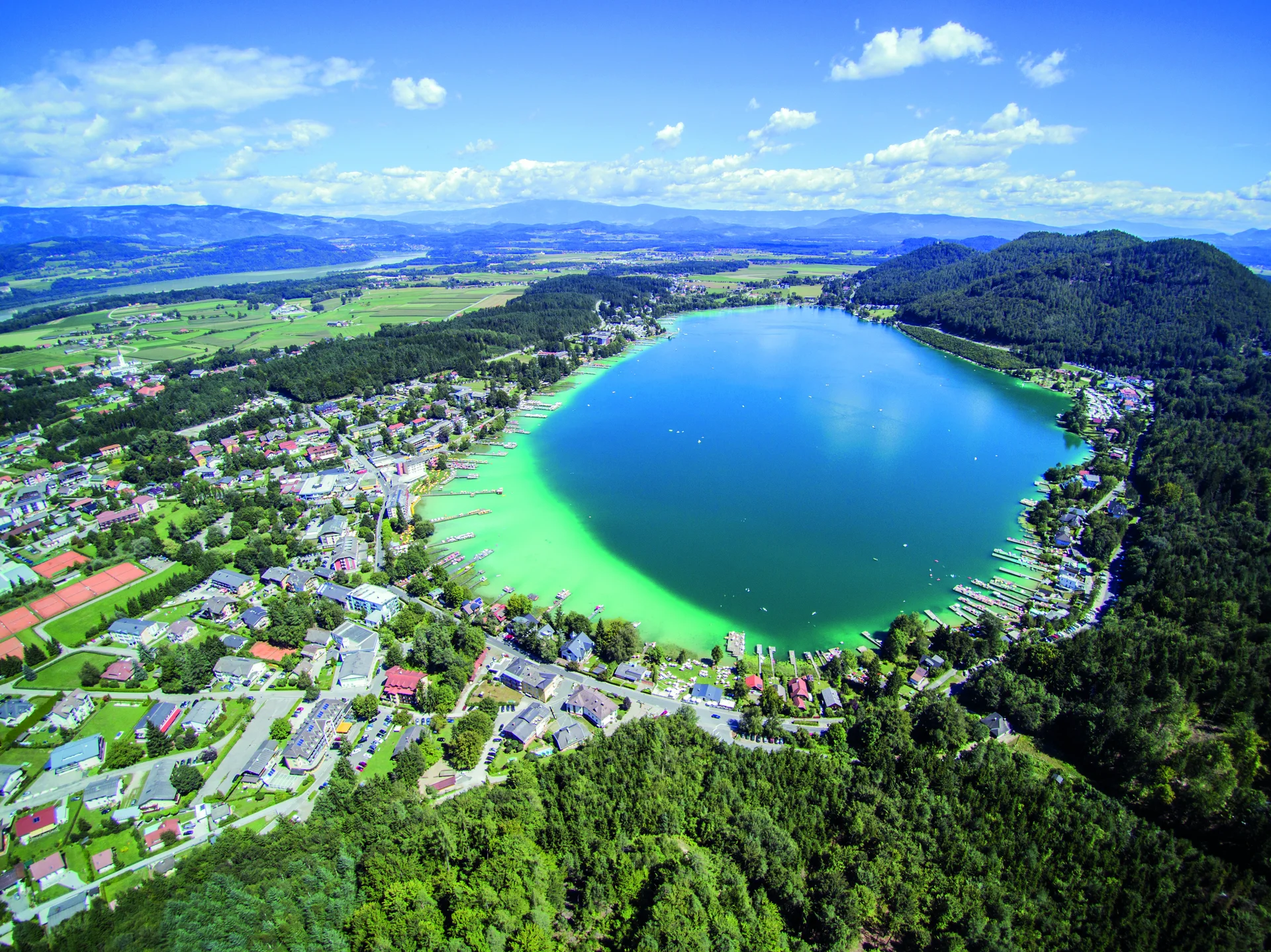 Der Klopeiner See ist ein malerisches Ausflugsziel in Kärnten, Österreich, das für seine atemberaubende Schönheit und seine hervorragenden Freizeitmöglichkeiten bekannt ist. Mit einer Wassertemperatur von bis zu 28 Grad Celsius im Sommer gilt der Klopeiner See als einer der wärmsten Badeseen Europas und zieht zahlreiche Besucher an, die die Sonne und das klare Wasser genießen möchten. Die Umgebung des Sees bietet eine Vielzahl von Aktivitäten, darunter Schwimmen, Segeln, Surfen und Radfahren. Zudem laden die idyllischen Wanderwege rund um den See dazu ein, die beeindruckende Natur zu erkunden. Der Klopeiner See ist nicht nur ein Ort der Erholung, sondern auch ein kulturelles Zentrum, das regelmäßig Veranstaltungen und Feste organisiert, die die lokale Tradition und Lebensart feiern. Ein Besuch am Klopeiner See ist eine hervorragende Gelegenheit, die Schönheit der Natur zu genießen, sich sportlich zu betätigen und unvergessliche Momente mit Familie und Freunden zu erleben. Die Kombination aus kristallklarem Wasser, vielfältigen Freizeitmöglichkeiten und einer einladenden Atmosphäre macht den Klopeiner See zu einem unverzichtbaren Ziel für Reisende.