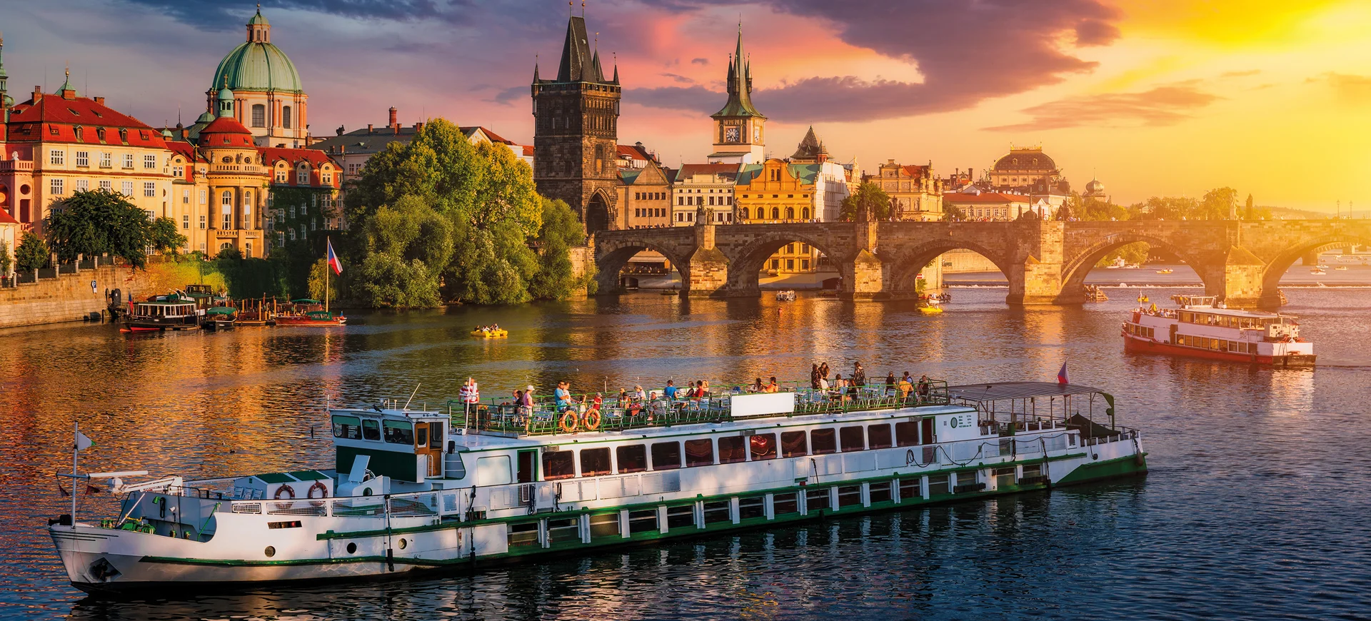 2.Tag: Nach dem Frühstück besuchen Sie gemeinsam mit Ihrer örtlichen Reiseleitung am Vormittag die wichtigsten Sehenswürdigkeiten der Stadt: das Altstädter Rathaus mit dem Figurenspiel, die verwinkelten Gassen um den Altstädter Ring, die gotische Karlsbrücke über die Moldau, die eleganten Paläste der Kleinseite oder der monumentale Wenzelsplatz sind nur einige Höhepunkte dieser unnachahmlichen Stadt. Zur Mittagszeit wartet ein besonderer Höhepunkt auf Sie: eine Schifffahrt auf der Moldau. Während die einzigartige Silhouette an Ihnen vorbeizieht, können Sie das köstliche Mittagsbuffet auf dem Schiff genießen. Nachmittag haben Sie Zeit zu eigenen Entdeckungen in der Goldenen Stadt. Prag, die Perle an der Moldau, ganz nach ihren Vorstellungen. Abends haben Sie die Möglichkeit individuell in einem der unzähligen Restaurants in der Stadt zu speisen.